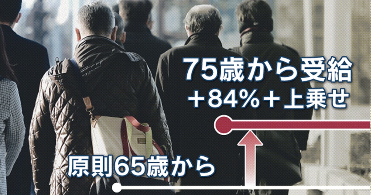 75歳からの繰り下げ受給の場合、65歳の受給開始と比較して受け取れる年金額が2倍になるそうです。